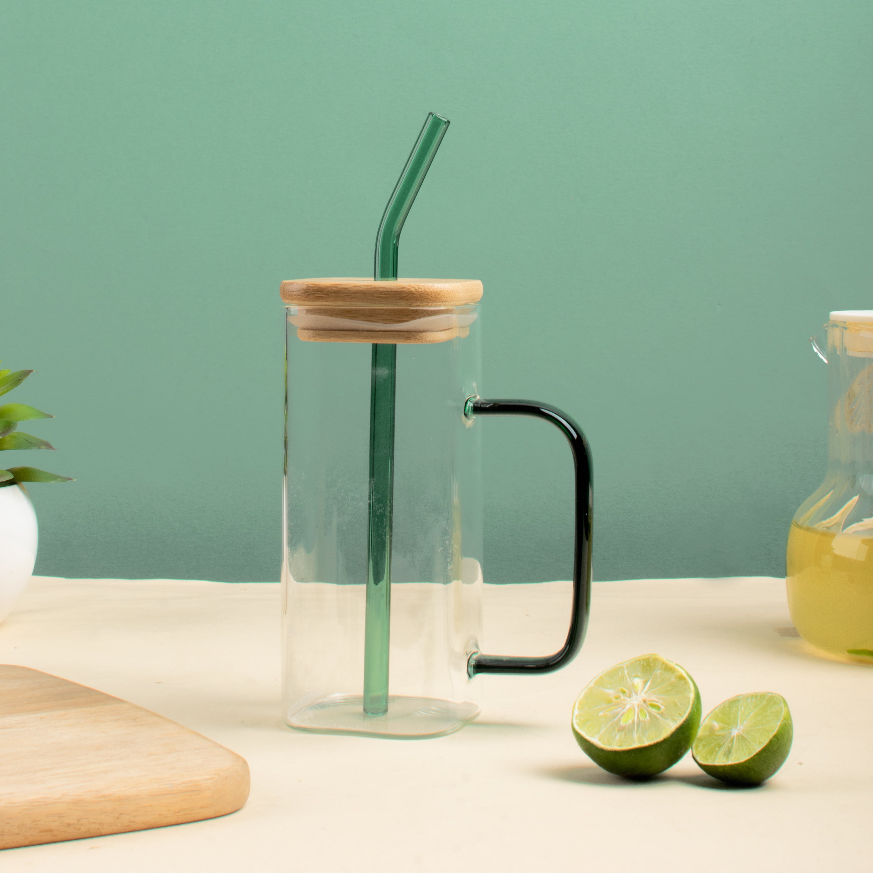 Sip. Live. Flex. with this Play It Cool Glass Can With Straw & Lid. Raise a glass to the most aesthetic glasses ever. This square-can glass mug is a remarkable fusion of intricate craftsmanship and modern design. The lid is made of bamboo wood and the straw is tinted glass. Not only does it add a fresh and trendy vibe to your drinkware collection at home but also leaves a long-lasting impression. Make a statement with this colourful and Instagram-worthy glass. The borosilicate glass ensures the durability, heat-resistance, lightweight, and scratch-resistant feature of this glass. Sip on hot beverages like milk, coffee, tea, or ice-cold drinks such as lemon tea, cold coffee, iced tea, or iced americano in this well-designed square can glass.
