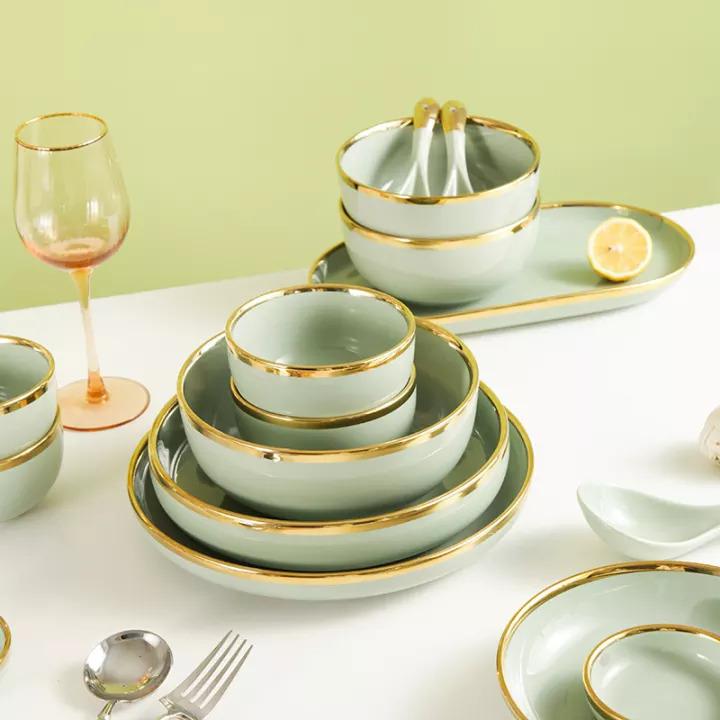 Make your ordinary meals exotic with this Nordic Sage Gold Rimmed Bowl which is a premium crockery item. You can add other items from our dinnerware range to build a complete dinner set that can woo your guests. It is microwave and dishwasher friendly.